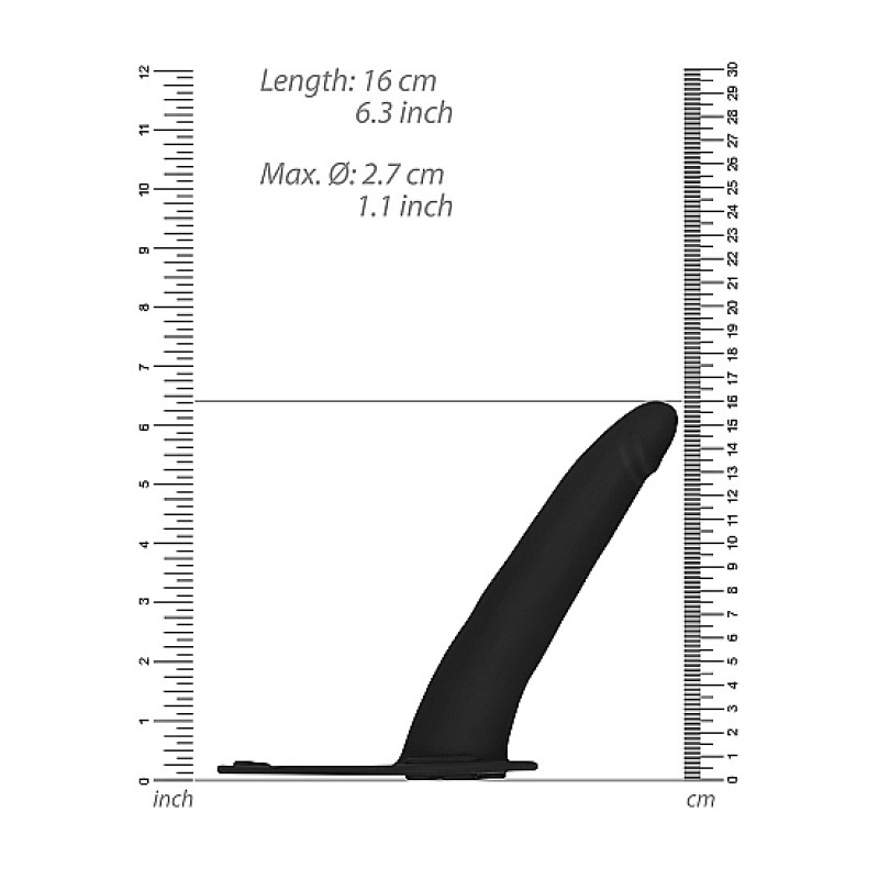 Selve dildoen er myk og fleksibel, og leveres med et trepunkts festesystem med trykknapper som holder den på plass.