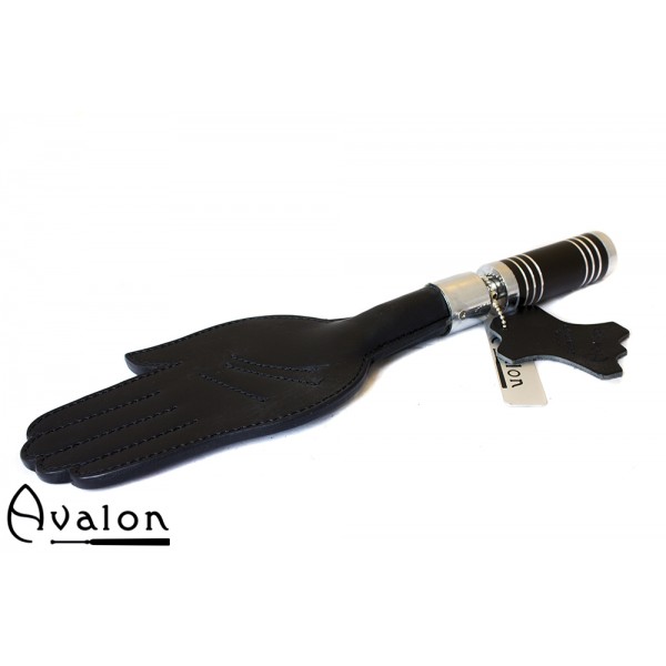 Paddle med sal-lær kuttet slik at den får en håndform.