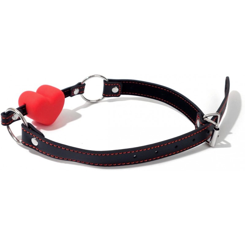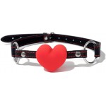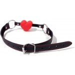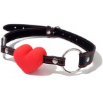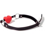 Gag med rødt hjerte i silikon og reimer i imitert skinn.
