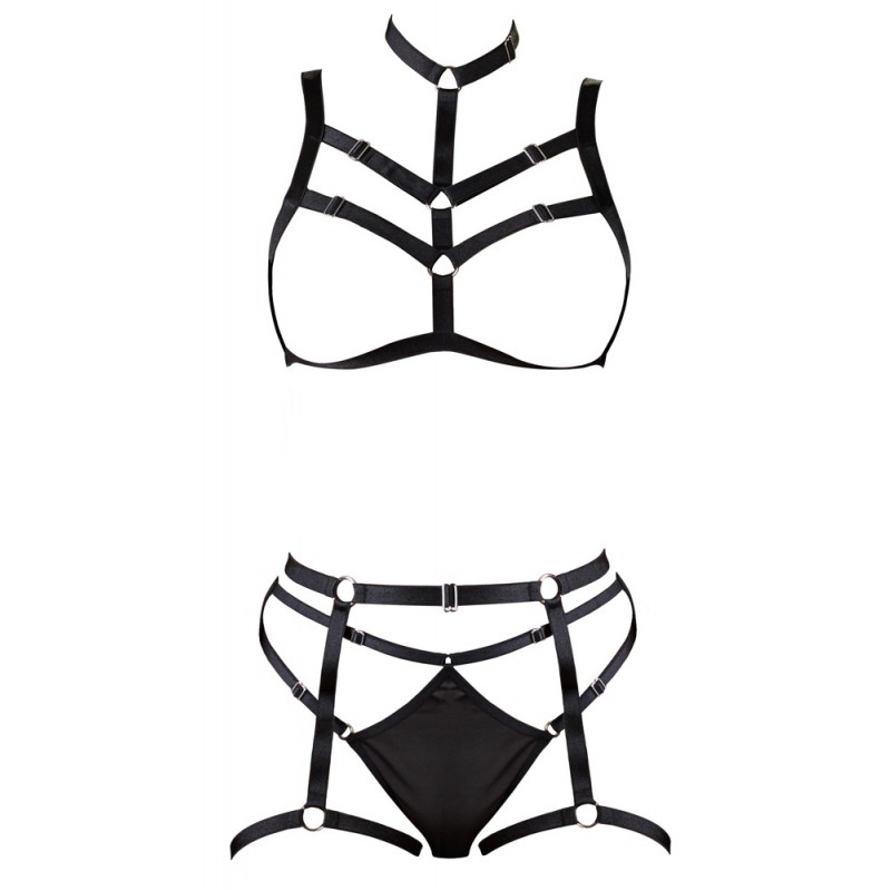 Harness sett som ser både elegant og sexy ut! Perfekt til en frekk aften hjemme, eller bruke under hverdagsklær. I settet får du både harness overdel, harness underdel og en matchende string.