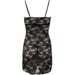 Neglisjén er deskorert med sorte blomsterblonder og et pent pyntebånd under brystene. Matchende string følger med.