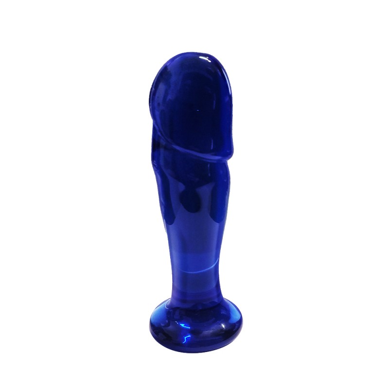 Glasset er gjennomsiktig med en kongeblå farge og penisformet fasong. Perfekt for anal lek.