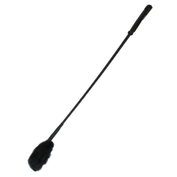 Klassisk ridepisk i lær med stor myk flipp i fauxpels.