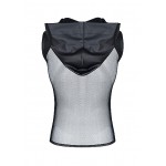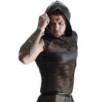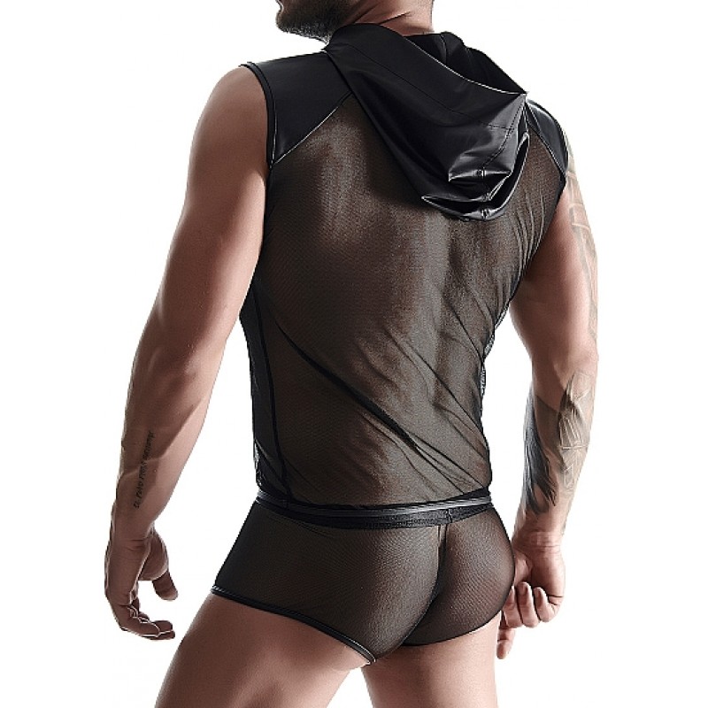 Frekk ermeløs skjorte med wetlook hette. Skjorten er laget av tettsittende netting med elementer av wetlook - en sexy kombinasjon!