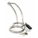 Høykvalitets kuklås av rustfritt stål med penisplugg, lås og penisring.