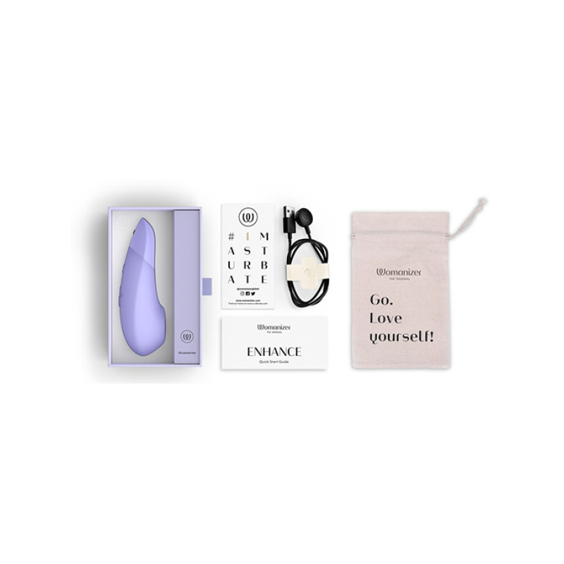Womanizer Enhance er stillegående, vanntett og oppladbar, og den ergonomiske formen gjør den behagelig å holde – enten du bruker den selv, eller sammen med en partner. Det brede stimulasjonshodet følger kroppens former, og den silkemyke silikonoverflaten gjør at den glir lett mot huden.