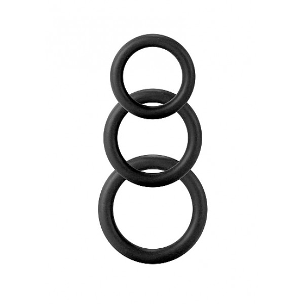 3 pk med enkle penisringer i 3 størrelser slik at du kan bruke ringene rundt både penis og pung.